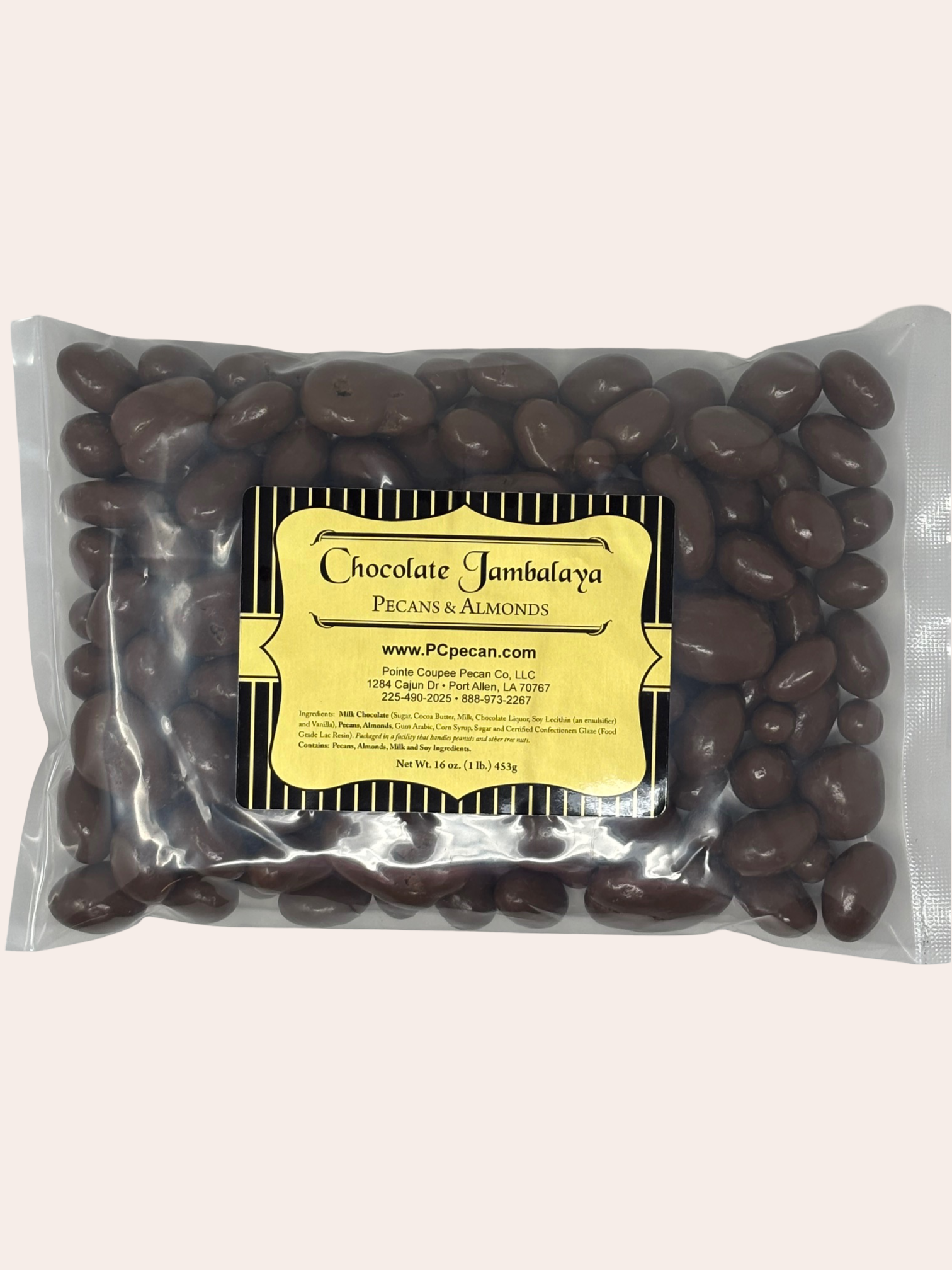 Surprise your taste buds with a delightful & unique mixture of creamy Chocolate Pecans & crunchy Chocolate Almonds blended together! (16 oz)
